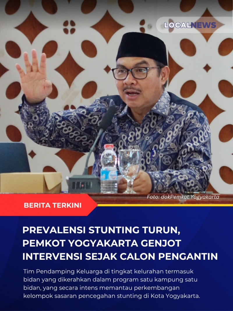 Pemerintah Kota Yogyakarta terus memperkuat upaya pencegahan stunting dengan menyasar kelompok rentan mulai dari calon pengantin, ibu hamil, ibu bersalin, hingga bayi di bawah dua tahun (baduta), melalui deteksi dini dan pendampingan oleh Tim Pendamping Keluarga (TPK) di setiap kelurahan. Wali Kota Yogyakarta, Hasto Wardoyo, menyatakan bahwa data real-time menjadi kunci untuk intervensi tepat sasaran, didukung oleh program “satu kampung satu bidan” yang memantau perkembangan by name by address. Hasilnya, prevalensi stunting turun dari 16,8 persen pada 2023 menjadi 14,8 persen pada 2024. Per 7 Juli 2025, sebanyak 26 dari 545 calon pengantin teridentifikasi berisiko stunting dan telah menerima intervensi berupa Pemberian Makanan Tambahan (PMT) serta tablet tambah darah. Selain itu, terdapat 9 ibu hamil, 443 baduta, dan 161 keluarga baru yang dikategorikan sebagai keluarga berisiko stunting dan juga telah mendapat intervensi dengan dukungan dana dari BOK, Danais, dan BKKBN.
